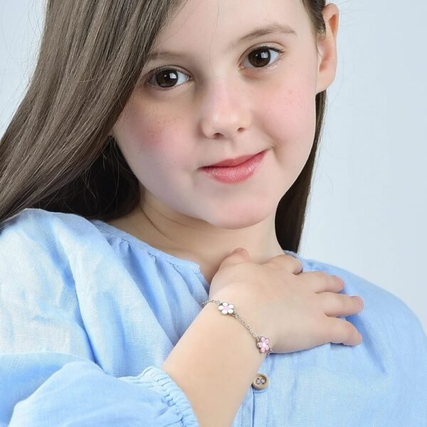 Bracciale Bambina Luca Barra In Acciaio Con Fiori Rosa E Bianchi