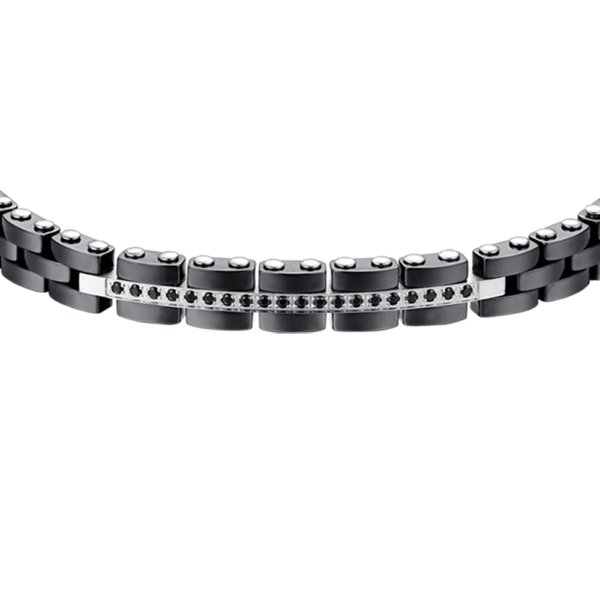 Bracciale Uomo Luca Barra In Acciaio Con Ceramica E Cristalli Neri