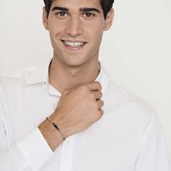 Bracciale Uomo Luca Barra In Acciaio Con Pietre Blu
