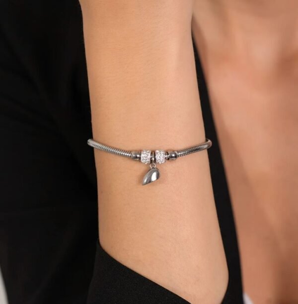 Doppio Bracciale Luca Barra Con Cuore Calamitato In Acciaio Con Zirconi Bianchi