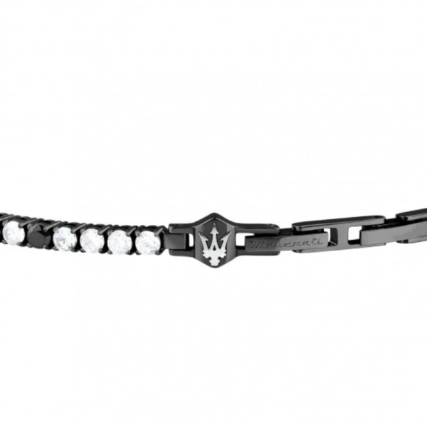 Bracciale Uomo Tennis Maserati In Acciaio Nero E Zirconi Bianchi E Neri