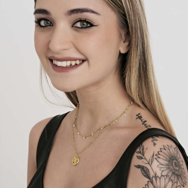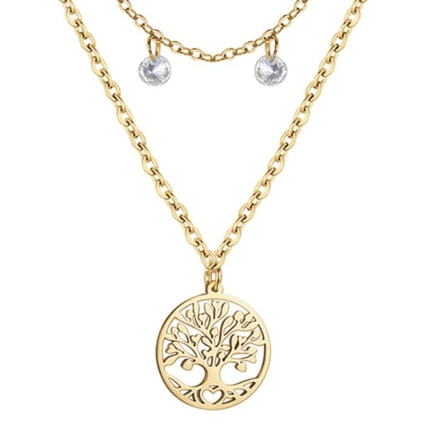 Collana Donna Luca Barra In Acciaio Dorato Con Albero Della Vita Pendente E Perle A Doppia Catena