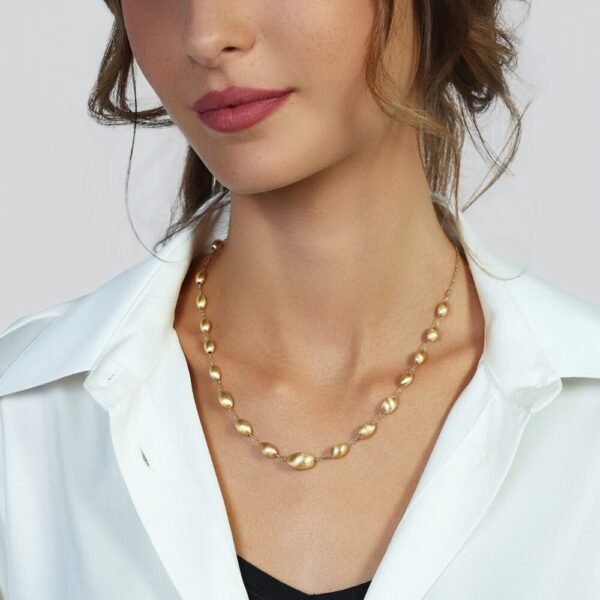 Se ami i dettagli che fanno la differenza in un look, amerai di certo questa collana in argento. Le raffinate perle ovali si alternano leggere lungo tutta la catena sottile per un tocco unico ed elegante in ogni occasione.