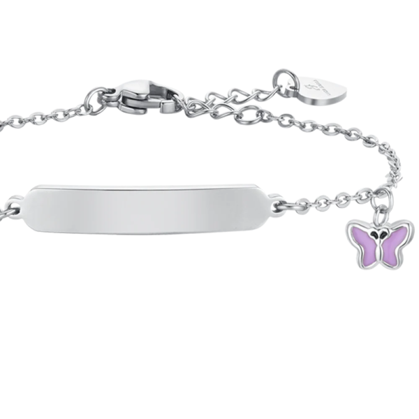 Bracciale Bambina Luca Barra In Acciaio Con Farfallina Viola E Piastra